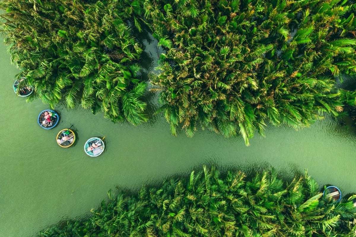 Bay Mau Coconut Forest is an eco-tourism site known for its lush green coconut groves and peaceful rivers. Visitors can take a boat ride through the waterways, watch fishermen demonstrate net-throwing, and enjoy lively performances. This unique activity offers a close, fun, and memorable experience for families on a trip to Da Nang – Hoi An.