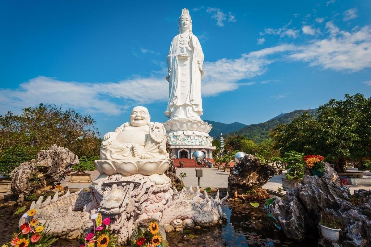 Linh Ung Pagoda on Son Tra Peninsula is the largest and most famous pagoda in Da Nang, situated with a breathtaking view of the ocean. The main feature is the 67-meter-tall statue of the Goddess of Mercy, a spiritual symbol for the city. Not only is it a sacred place of worship, but the pagoda offers a peaceful and serene atmosphere, along with magnificent views of Da Nang and the beautiful East Sea.