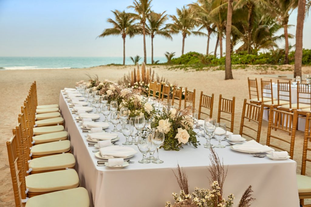 The beach area can host events for up to 700 guests, suitable for grand weddings requiring smart zoning between the ceremony and the reception.