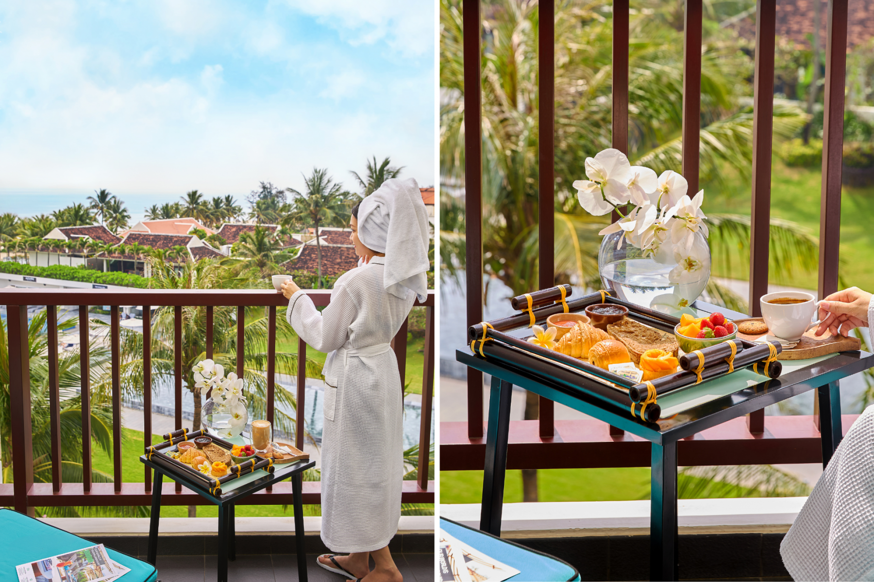 Khởi động buổi sáng thật nhẹ nhàng, thanh lịch nhưng vẫn đầy đủ dưỡng chất với ưu đãi Bữa sáng tiện lợi tại phòng. Thưởng thức sự kết hợp hài hòa của những loại bánh tươi hàng ngày và trái cây theo mùa hấp dẫn.
